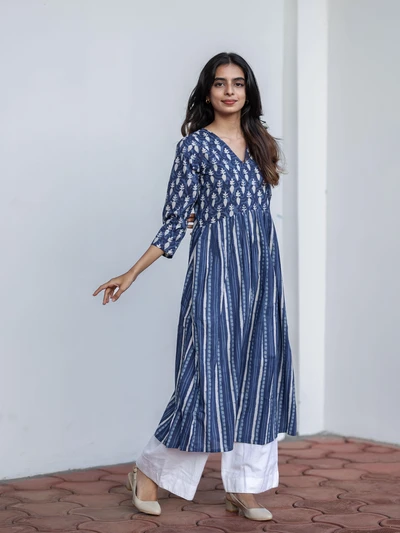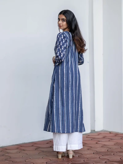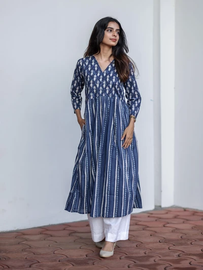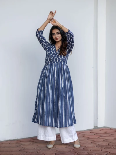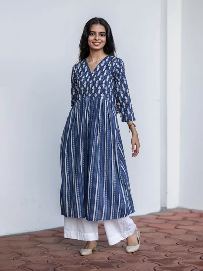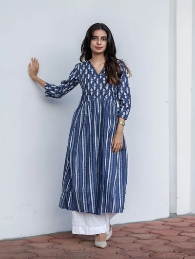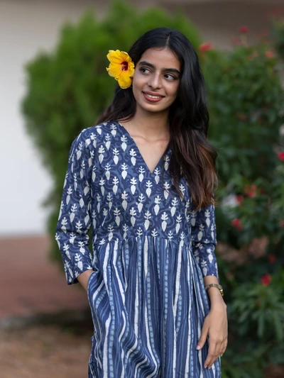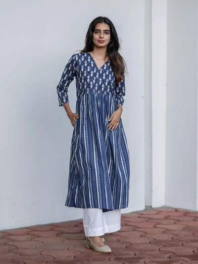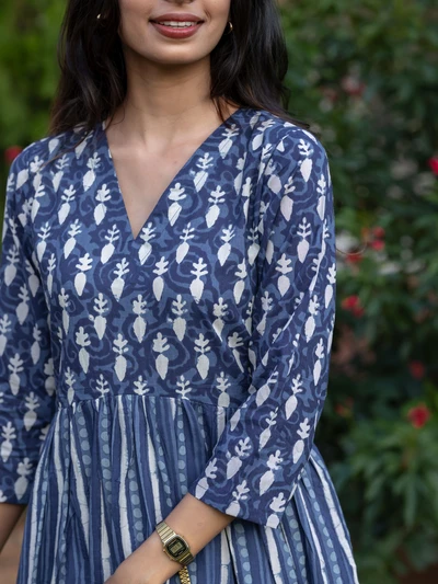 Handblock Indigo Floral Cotton Kurta