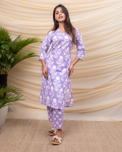 Blue Mangalgiri Handloom Cotton Kurta Set with Dupatta