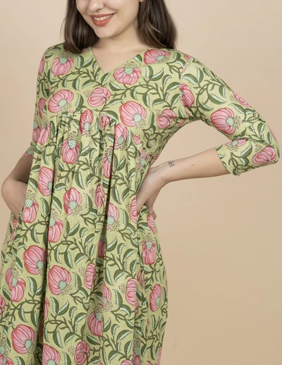 Lime Pink Floral Kurta