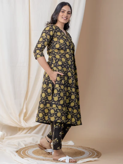 Green Mangalgiri Handloom Cotton Kurta Set with Dupatta