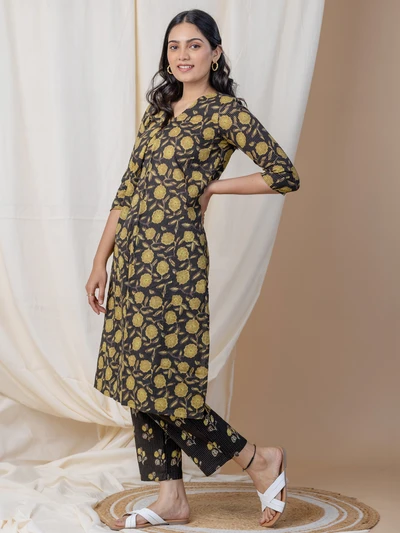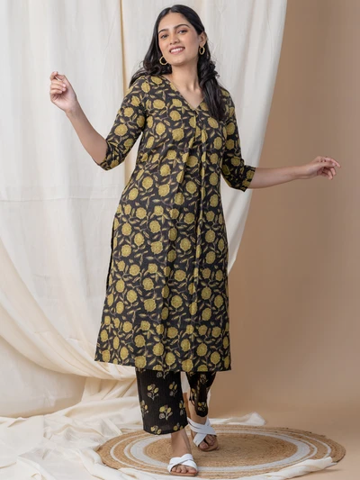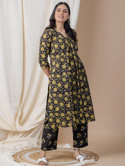 Beige Mangalgiri Handloom Cotton Kurta Set with Dupatta