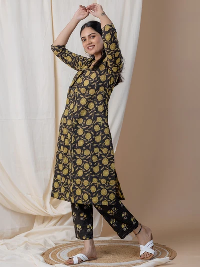 Blue Mangalgiri Handloom Cotton Kurta Set with Dupatta