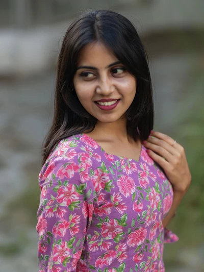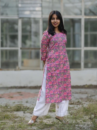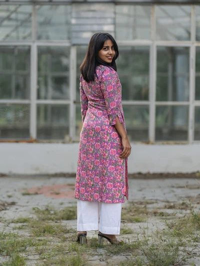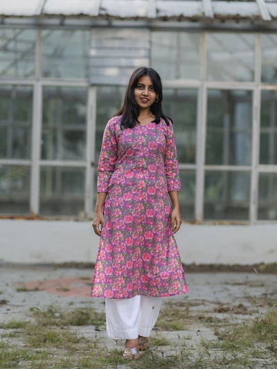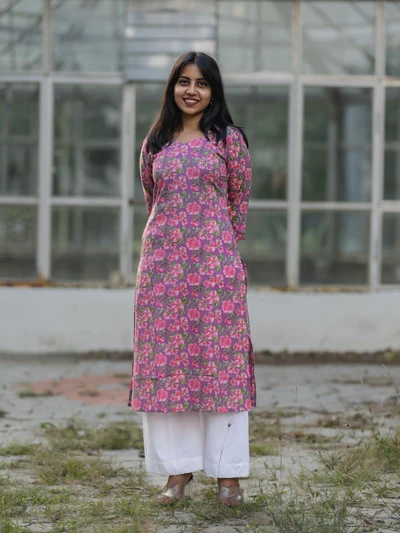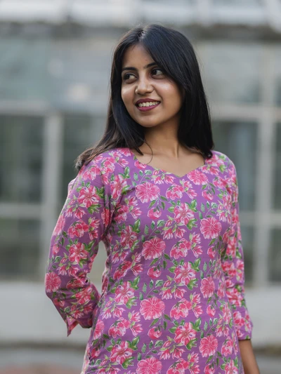 Mauve Floral Printed Kurta