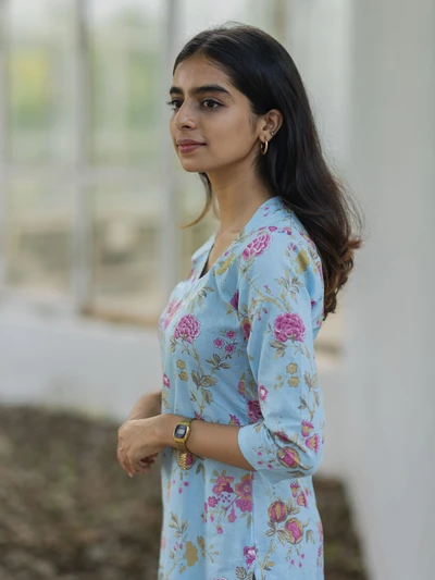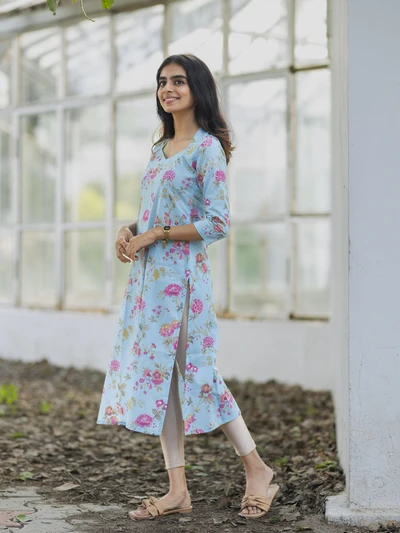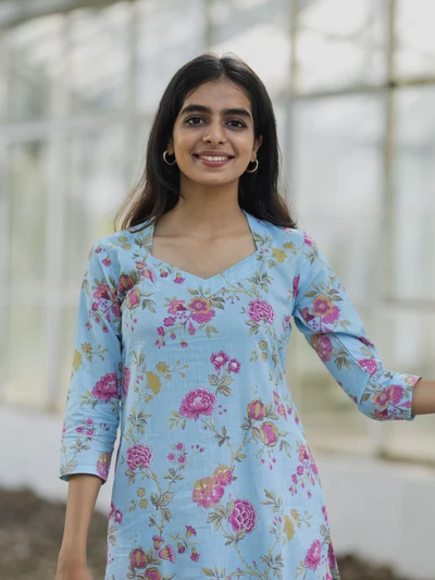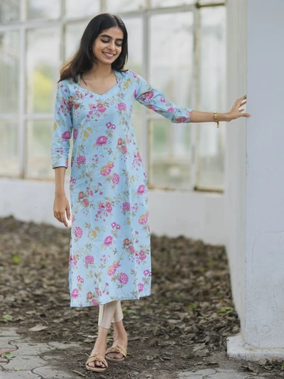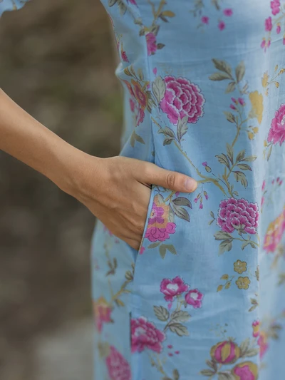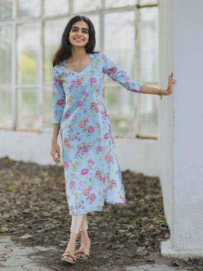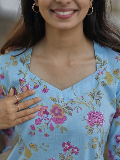 Melody Blue Pink Floral Printed Kurta