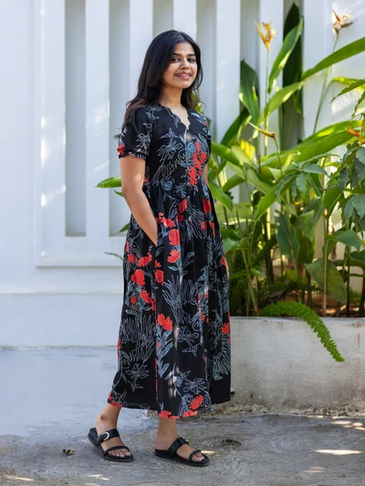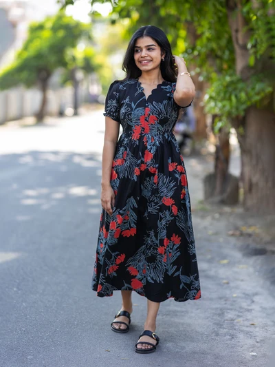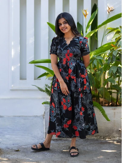 Red Floral Maternity Dress