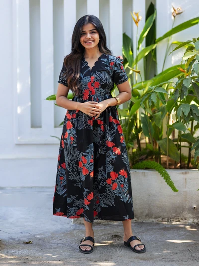 Monochrome Floral Printed Wrap Dress