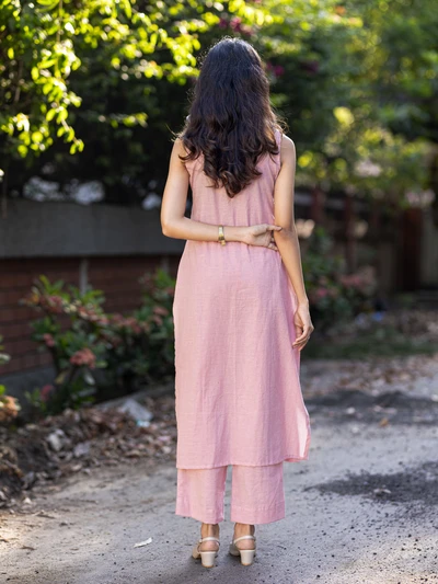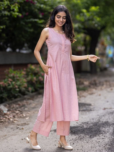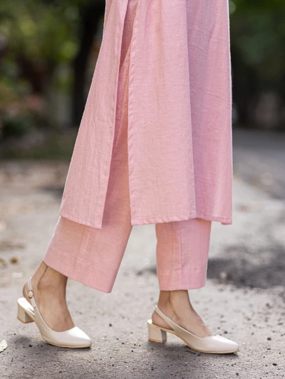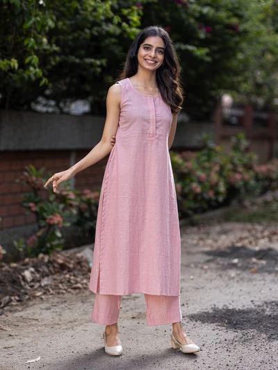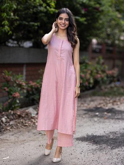 Beige Mangalgiri Handloom Cotton Kurta Set with Dupatta