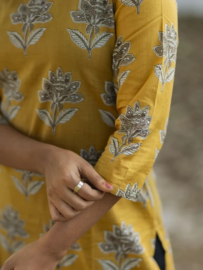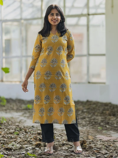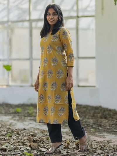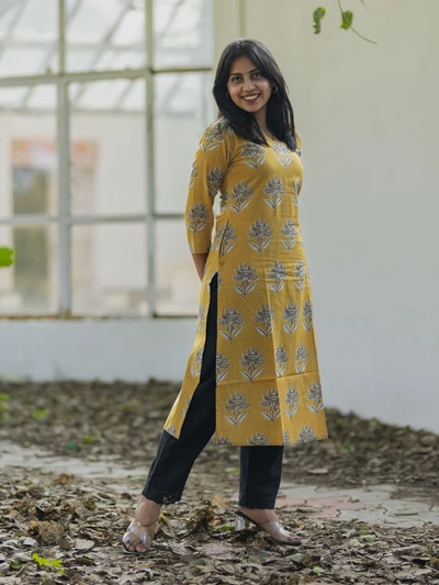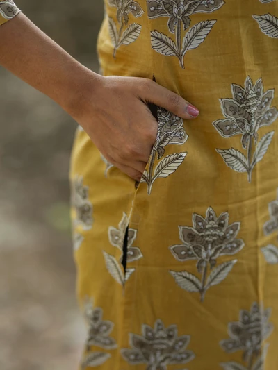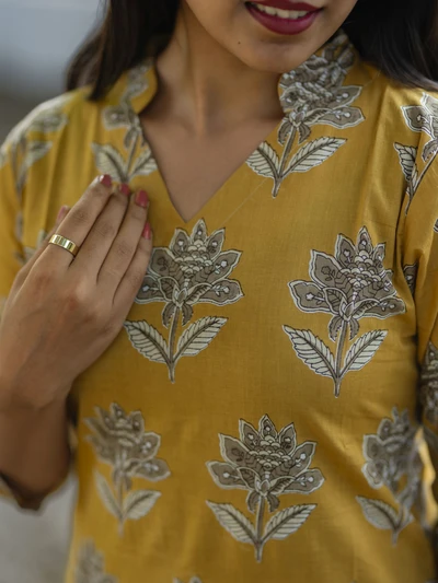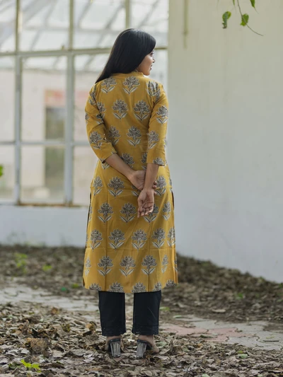 Mustard Yellow Ajrak Printed Kurta