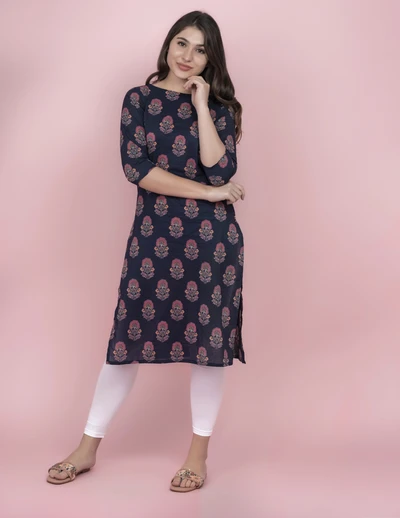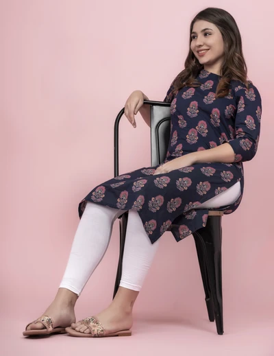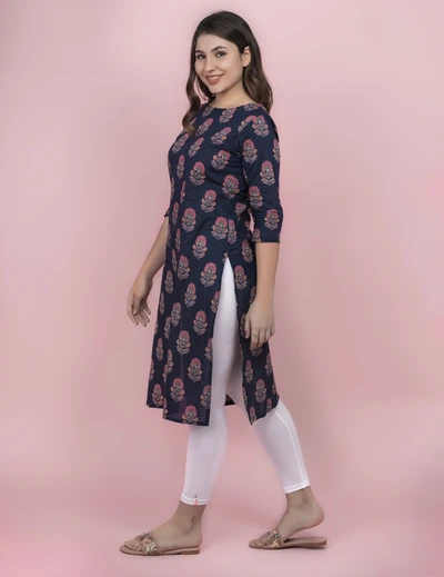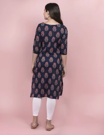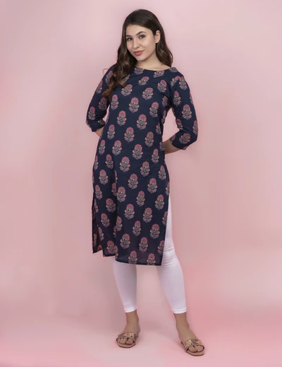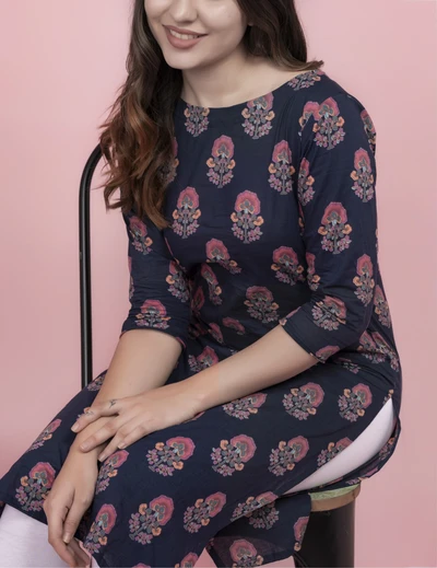 Blue Floral Cotton Kurti