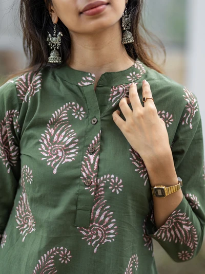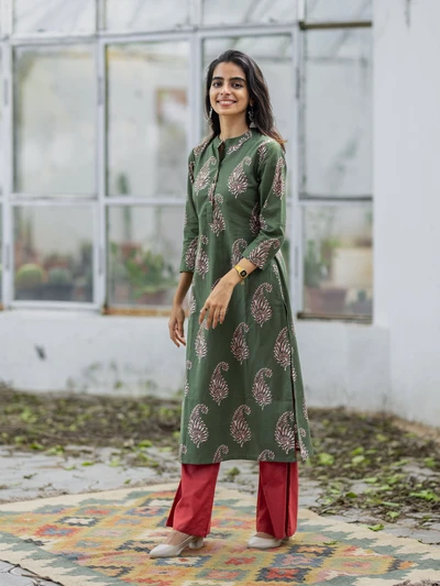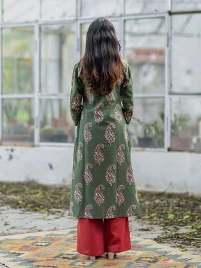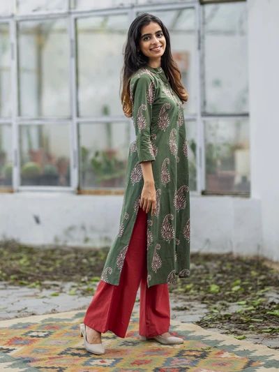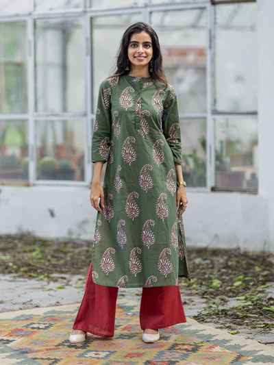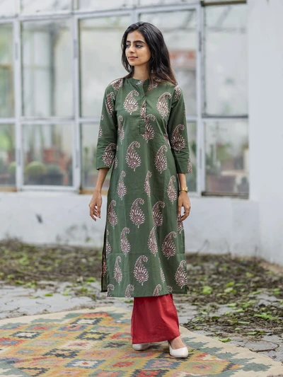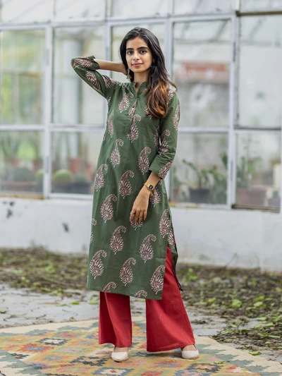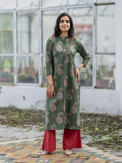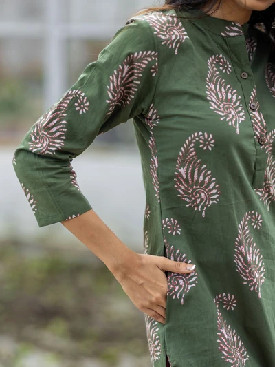 Olive Green Paisley Cotton Kurti