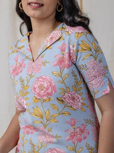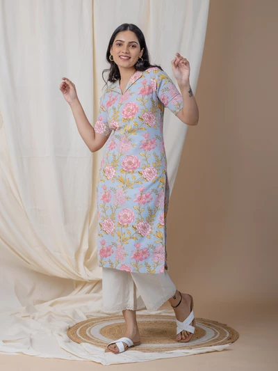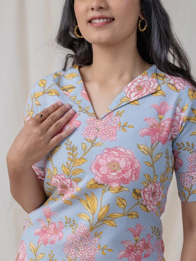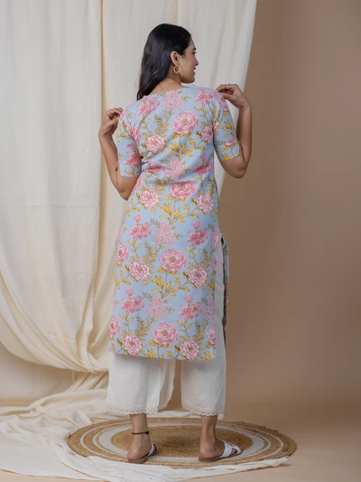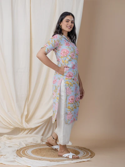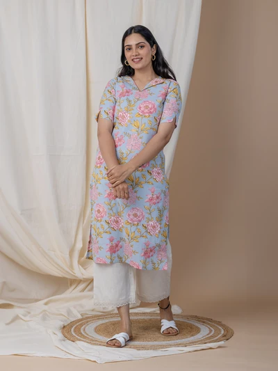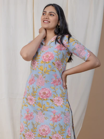 Pastel Blue Floral Kurta