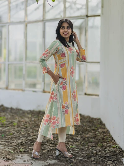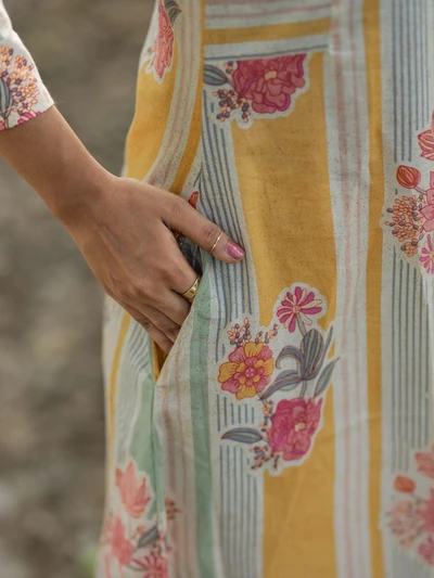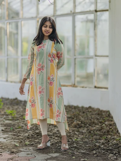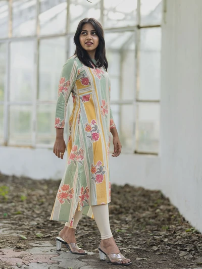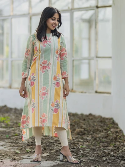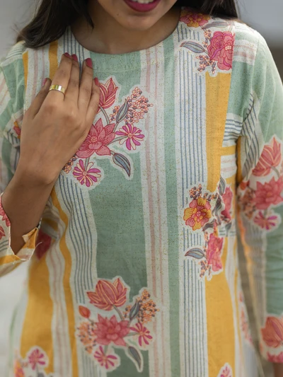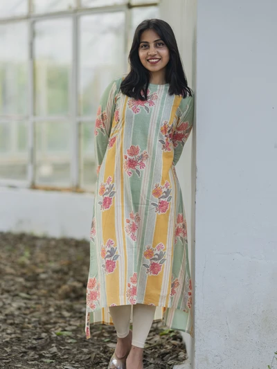 Pastel Stripes Floral Kurta