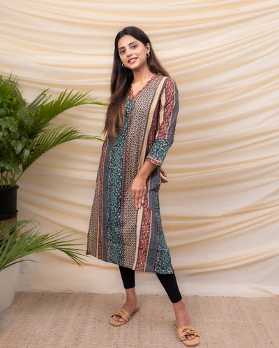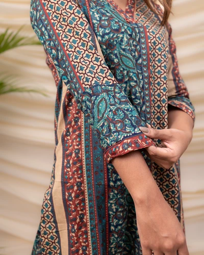 Green Ajrak Cotton Kurta