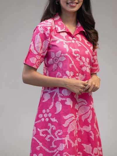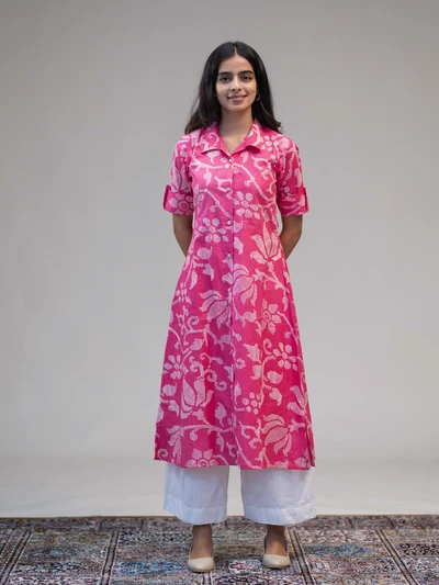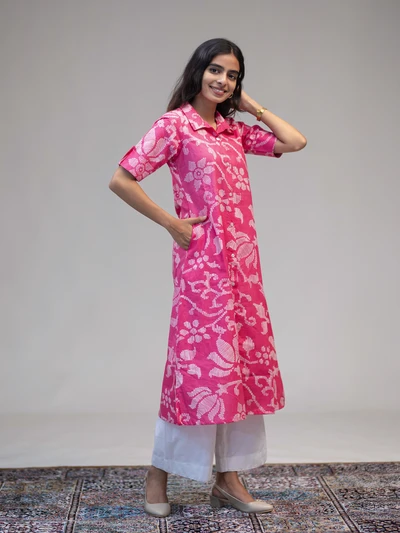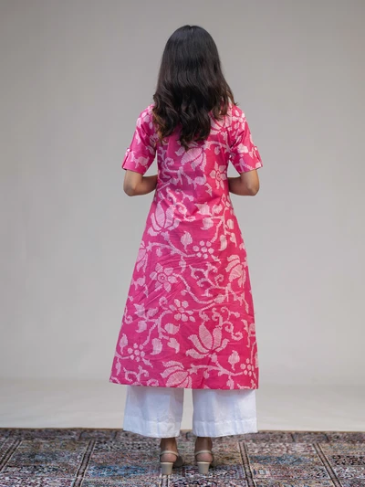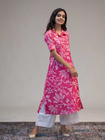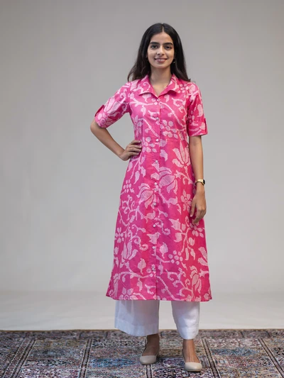 Pink A-Line Abstract Floral Kurta