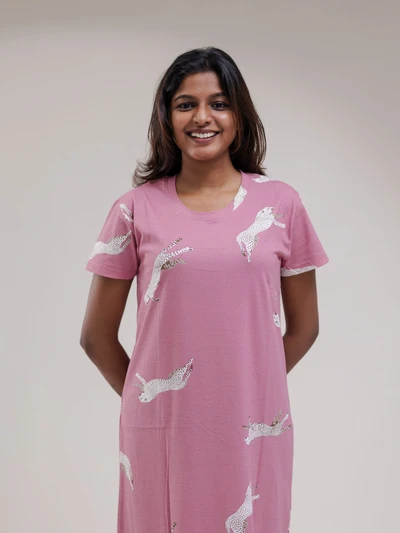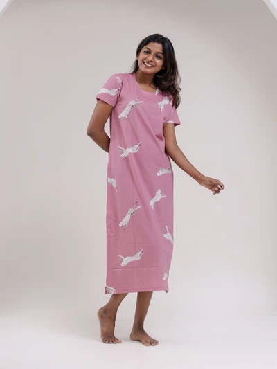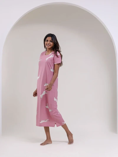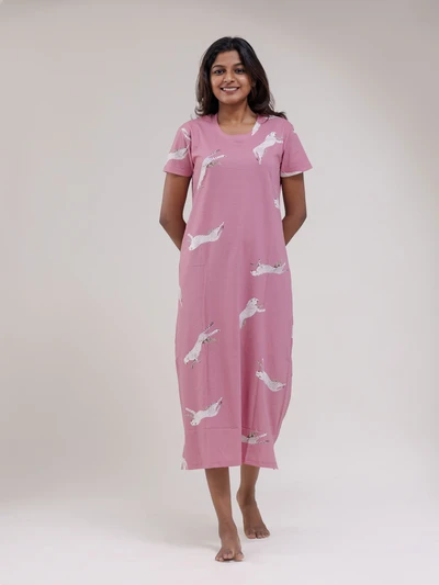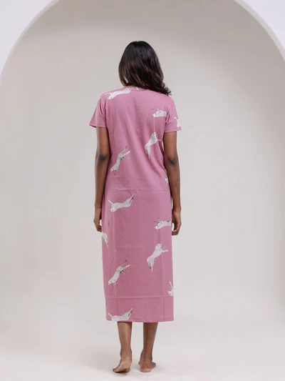Cream Leafy Leaf - Cotton Maternity Lounge Dress