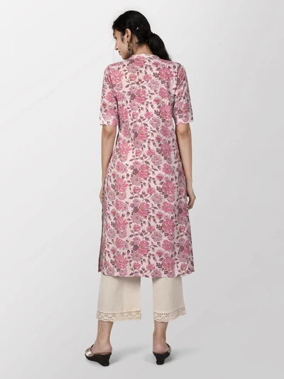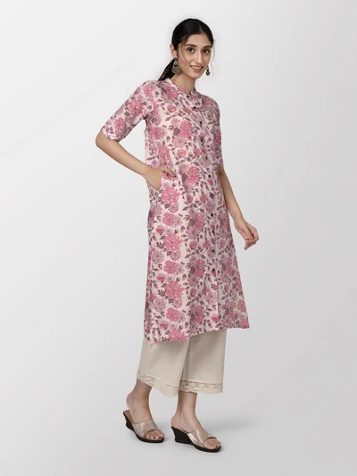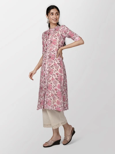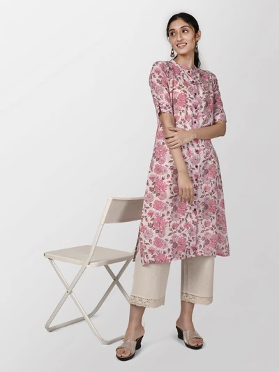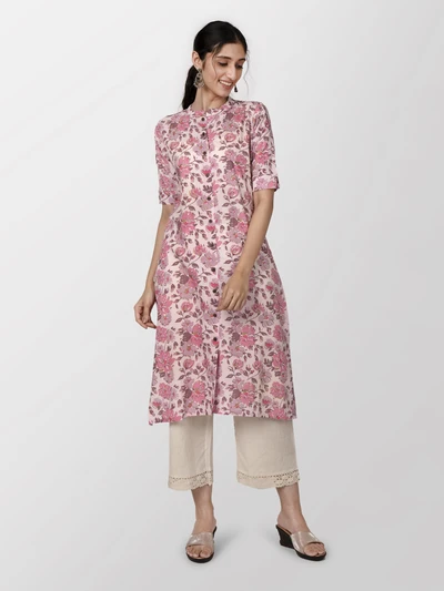 Pink Floral A-Line Kurta