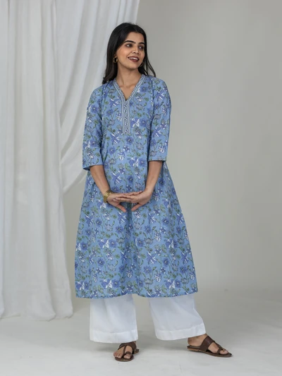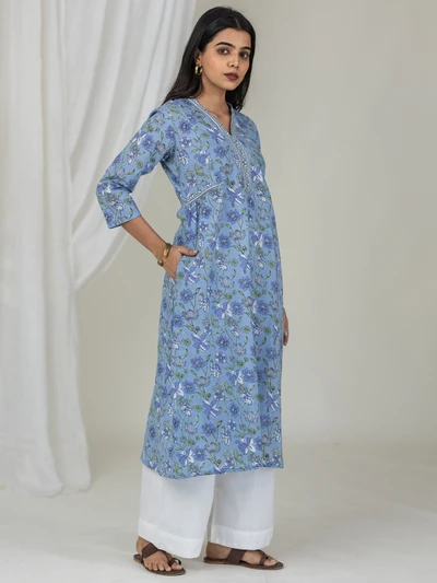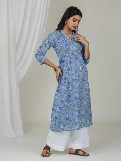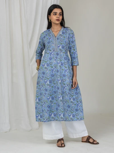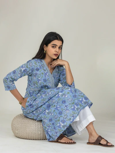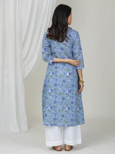 Blue Floral Cotton Kurti