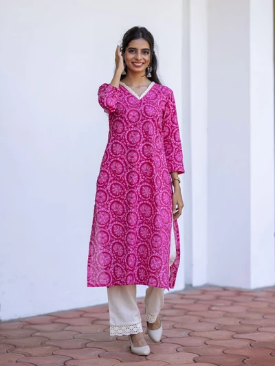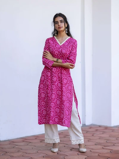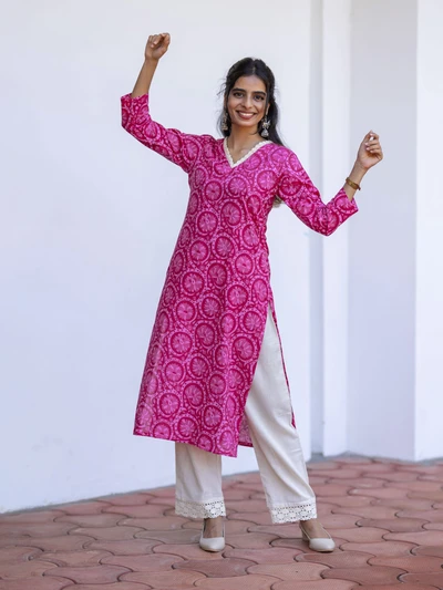 Pink Lotus Charm Cotton Kurta