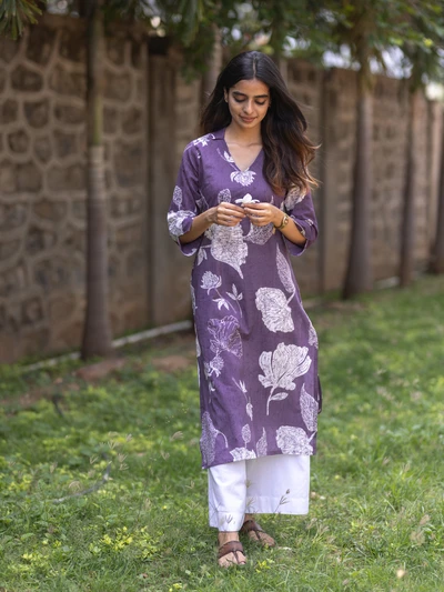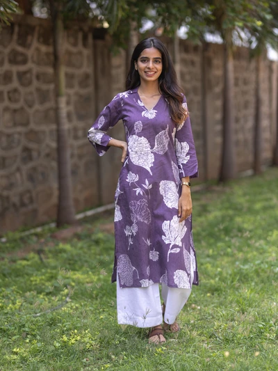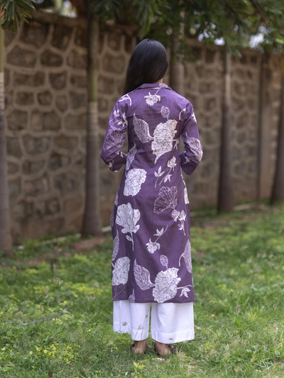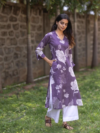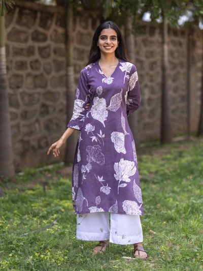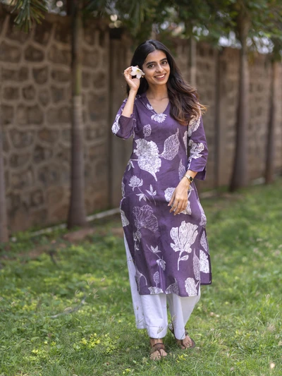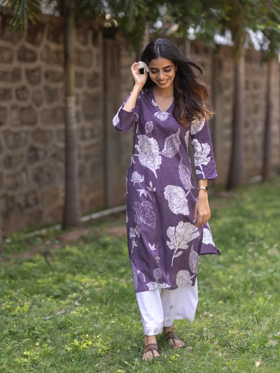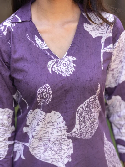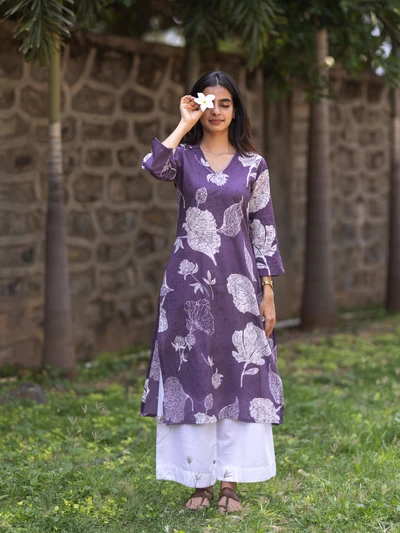 Purple Champa Floral Printed Kurta