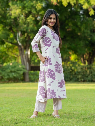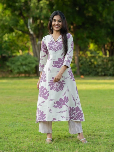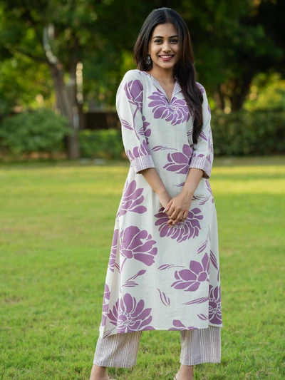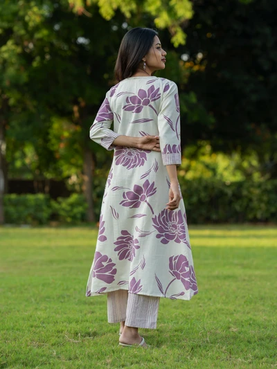 Beige Mangalgiri Handloom Cotton Kurta Set with Dupatta