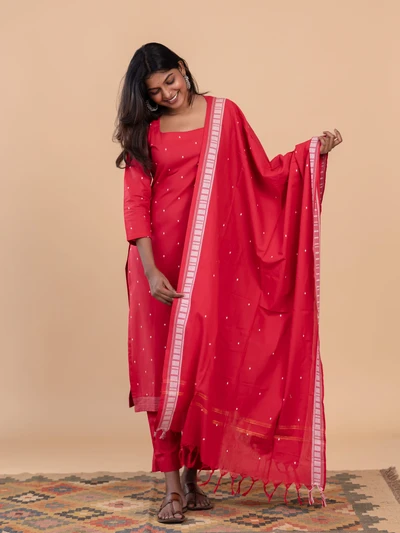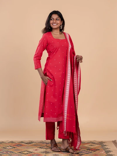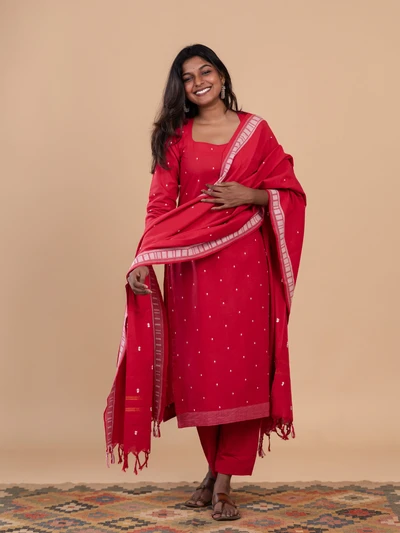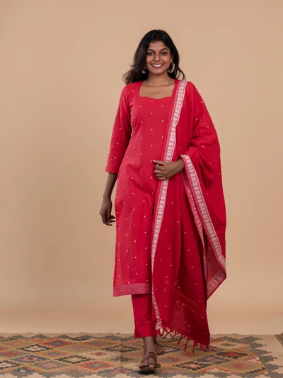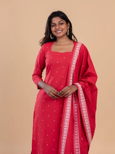 Tussar Chettinad Kurta with Dupatta Festive Set