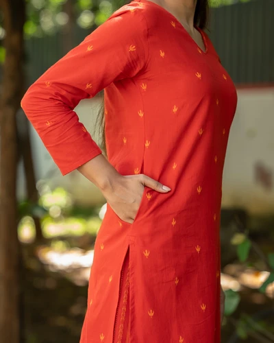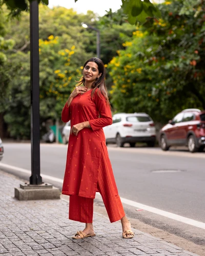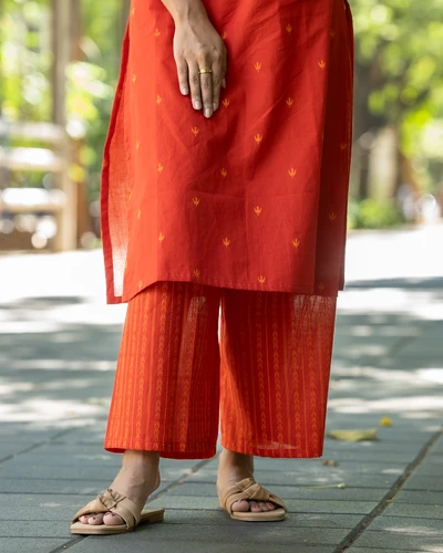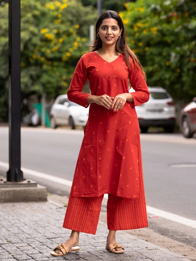 Beige Mangalgiri Handloom Cotton Kurta Set with Dupatta