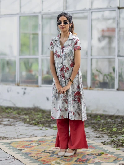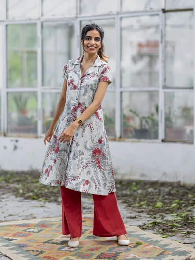 Beige Mangalgiri Handloom Cotton Kurta Set with Dupatta