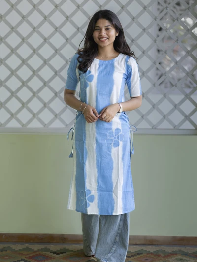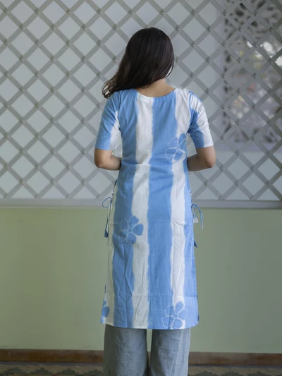 Blue White Floral Printed Kurta