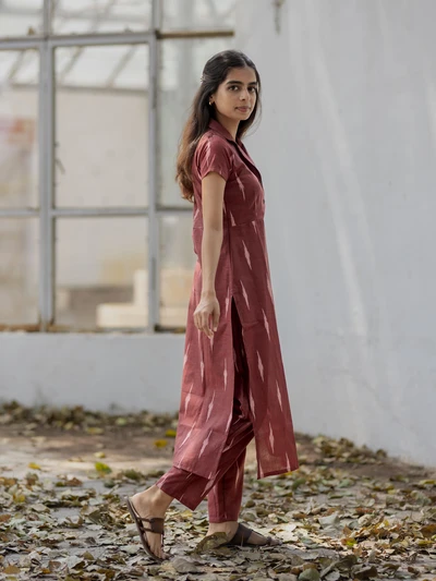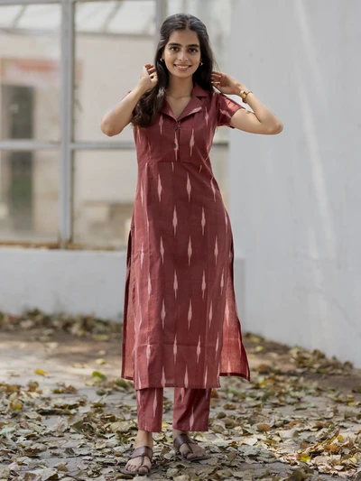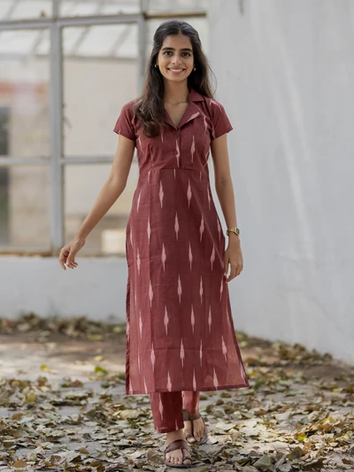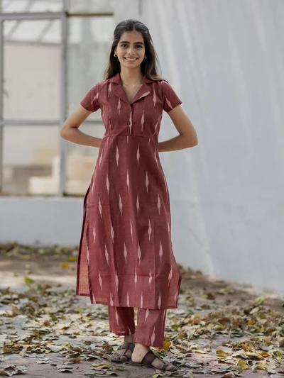 Beige Mangalgiri Handloom Cotton Kurta Set with Dupatta