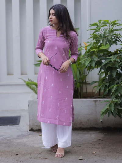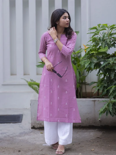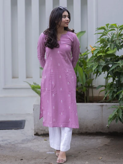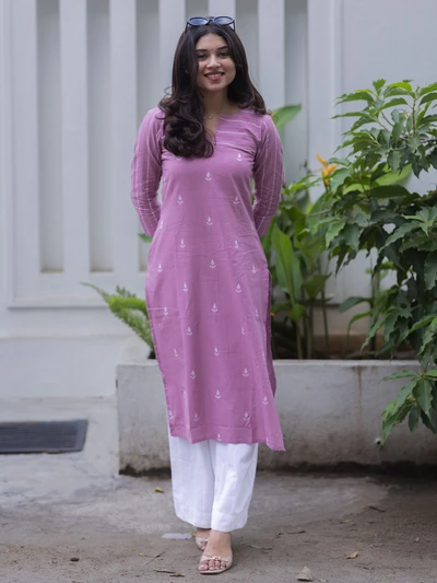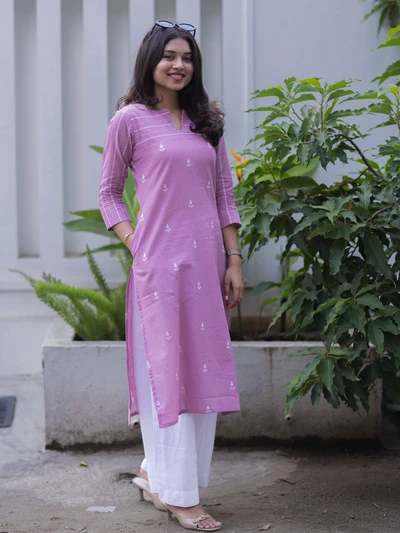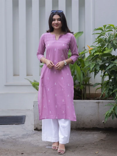 Soft Plum Striped Printed Kurta