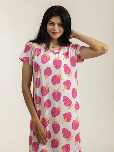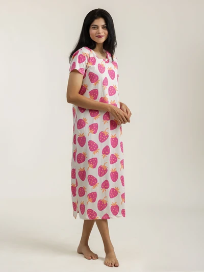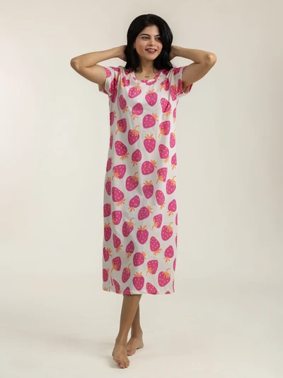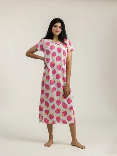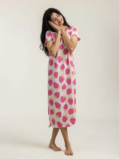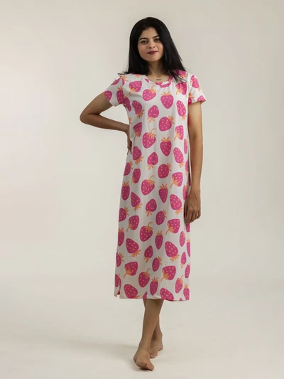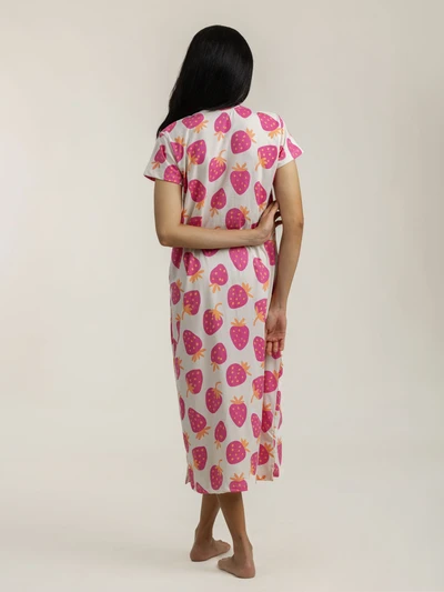 Cream Leafy Leaf - Cotton Maternity Lounge Dress