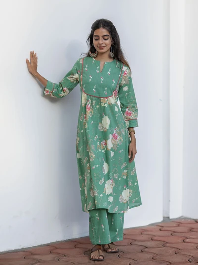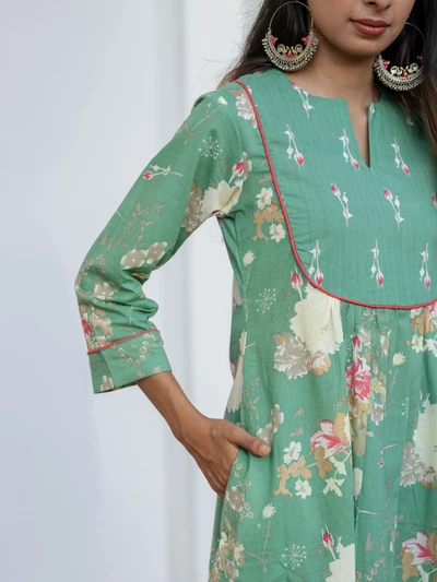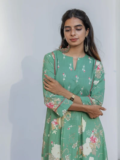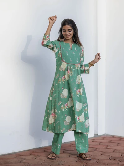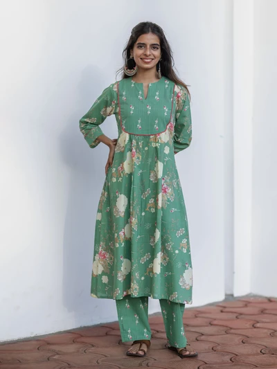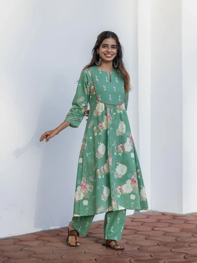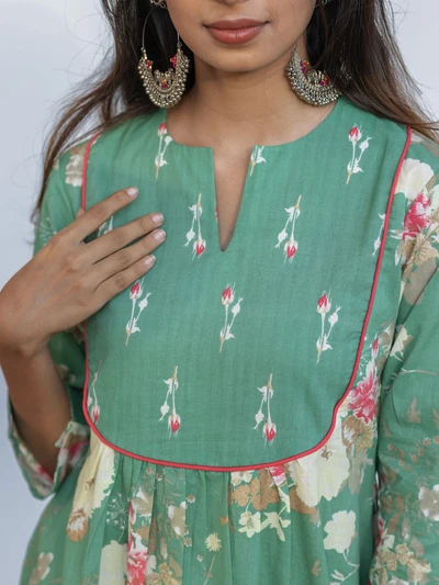 Green Ajrak Anarkali Kurta Set