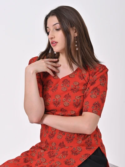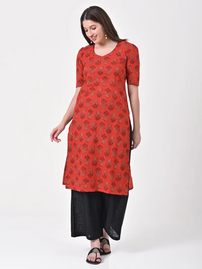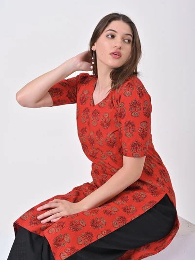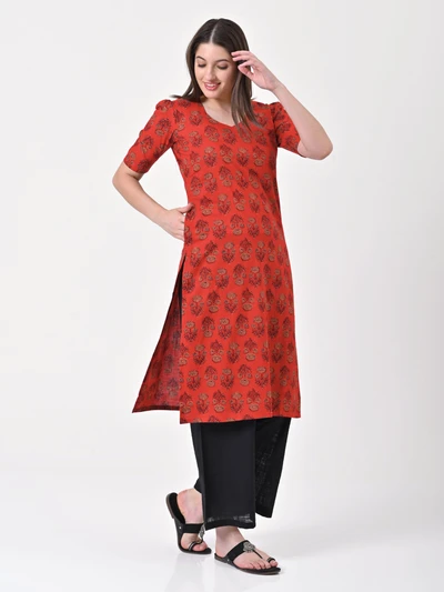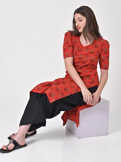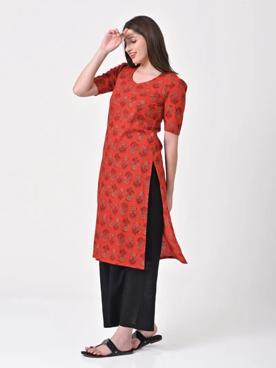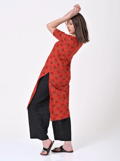 Vermilion Red Cotton Kurta