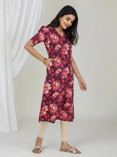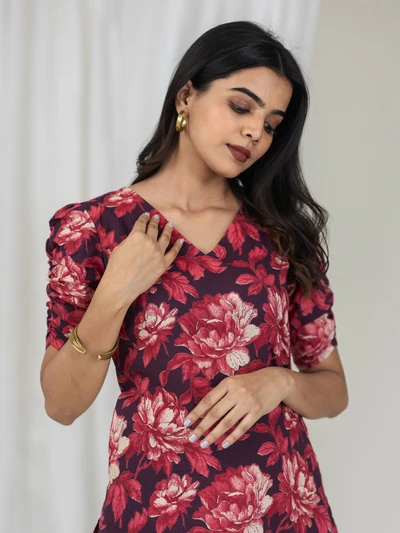 Rustic Abstract Maroon Bloom Kurta