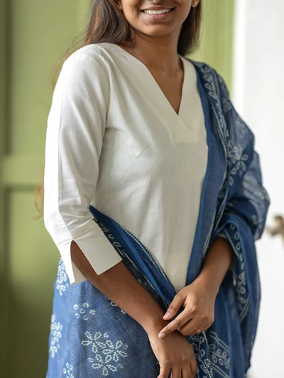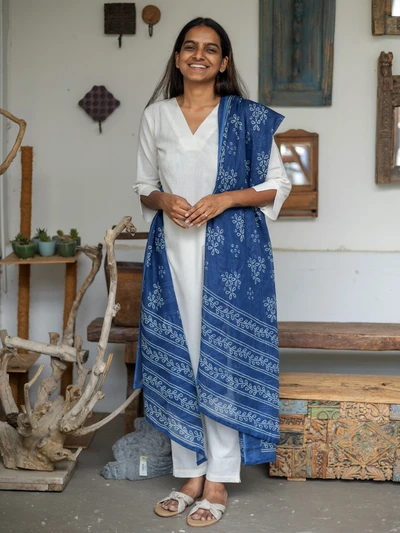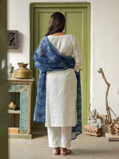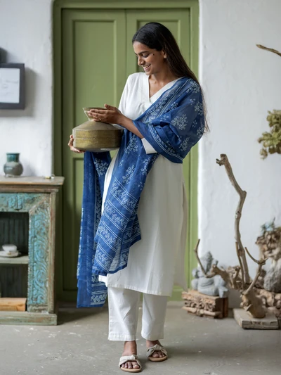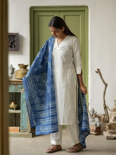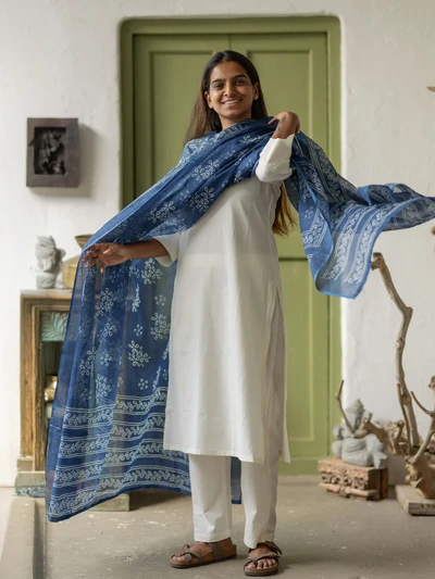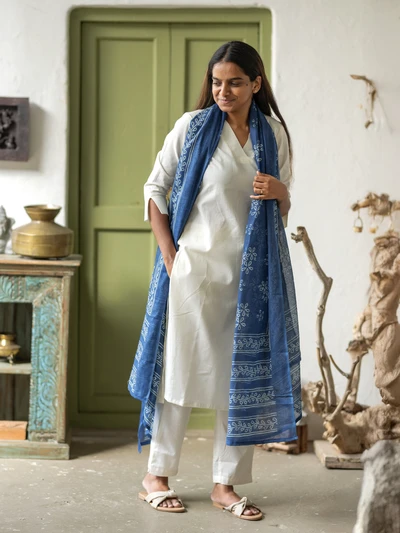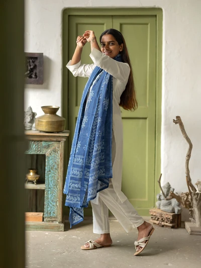 Blue Mangalgiri Handloom Cotton Kurta Set with Dupatta