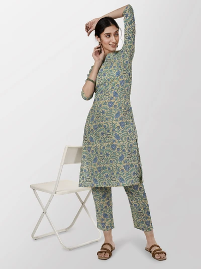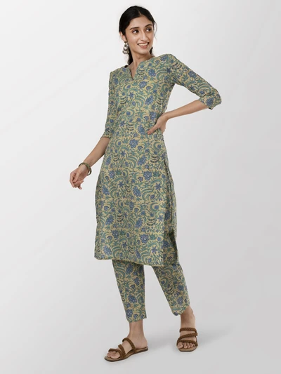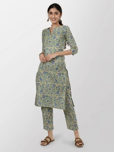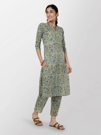 Green Mangalgiri Handloom Cotton Kurta Set with Dupatta