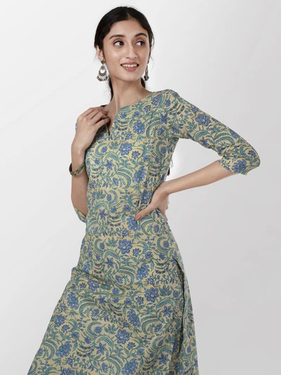 Beige Mangalgiri Handloom Cotton Kurta Set with Dupatta