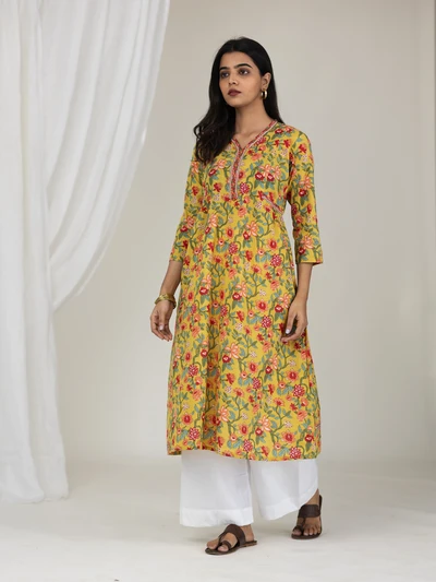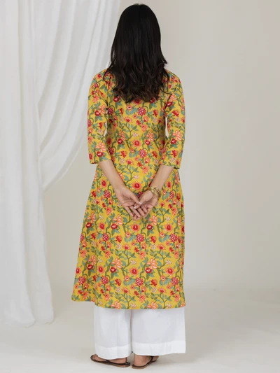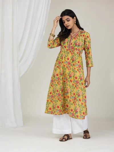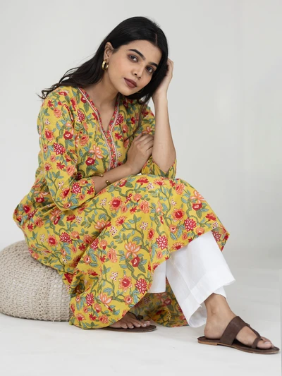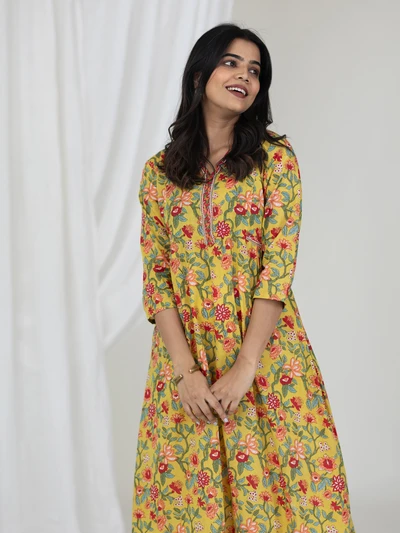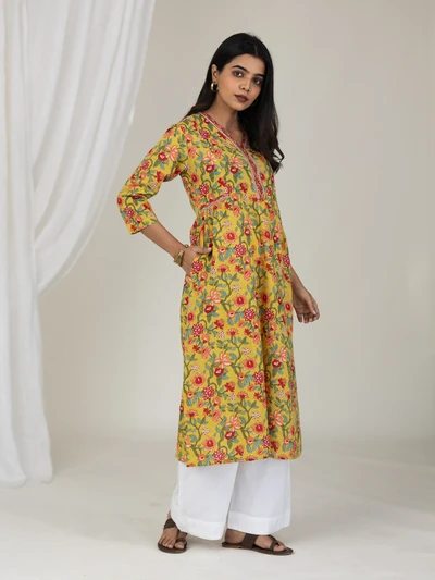 Yellow Floral Gathered Kurta