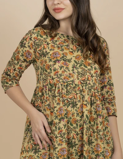 Yellow Floral Kurta with Trousers