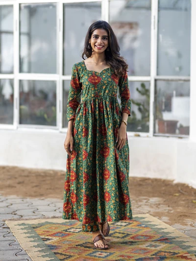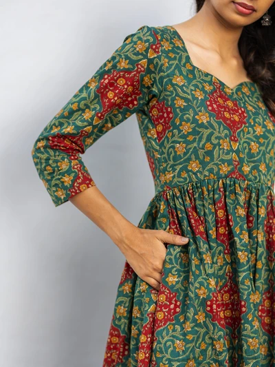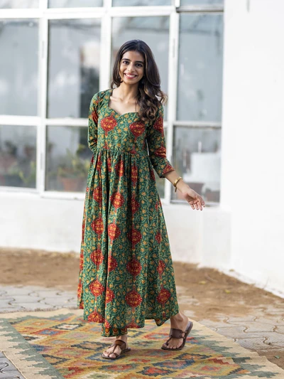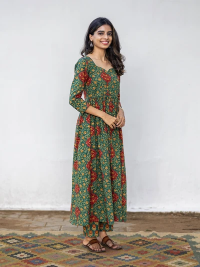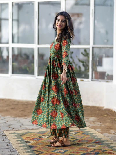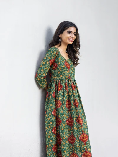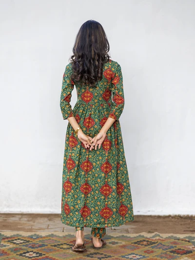 Green Ajrak Cotton Kurta