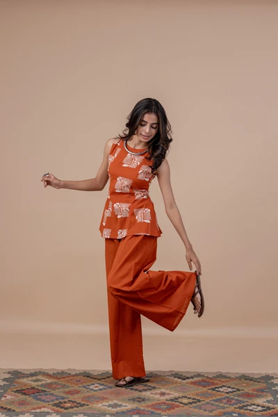 Aurelia Orange Peplum Top