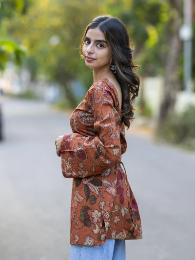 Aurelia Orange Peplum Top
