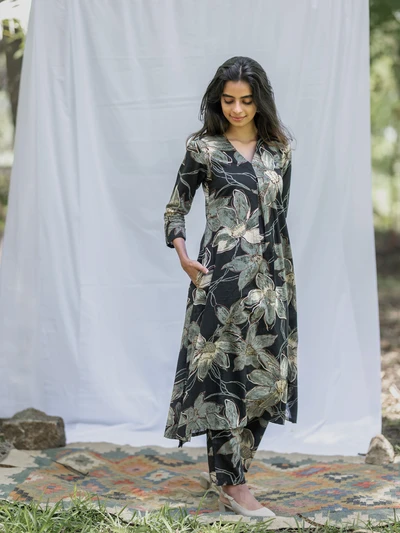 Blue Mangalgiri Handloom Cotton Kurta Set with Dupatta