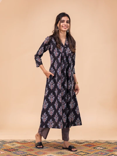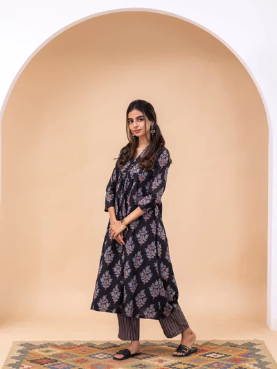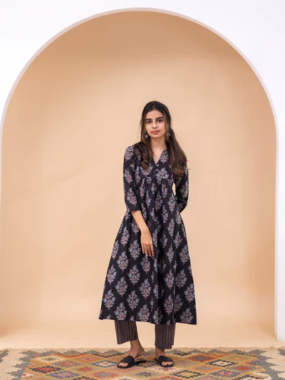 Block Printed A-Line Kurta Set