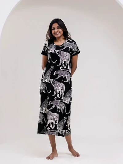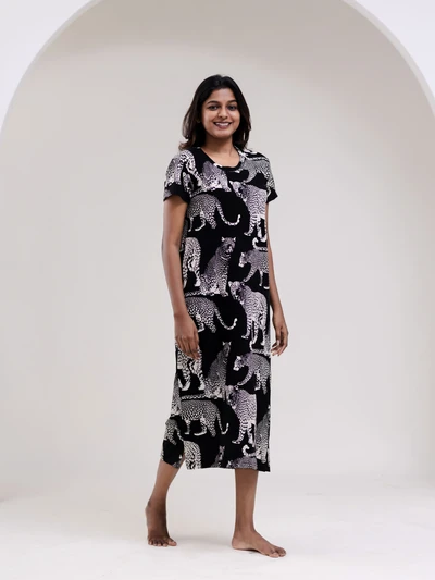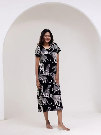 Cream Leafy Leaf - Cotton Maternity Lounge Dress