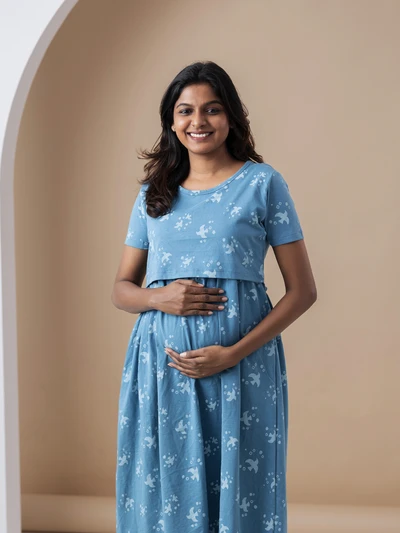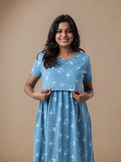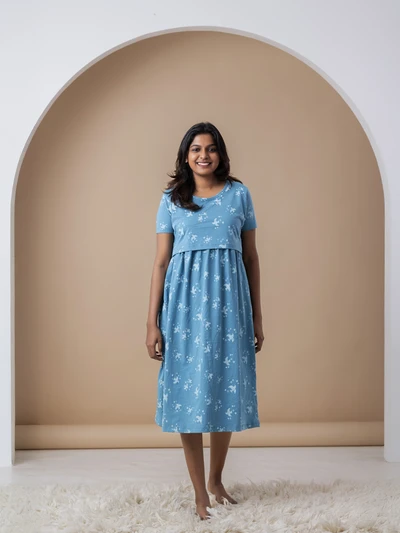 Blue Bird - Cotton Maternity Lounge Dress