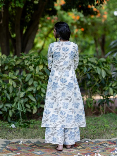 Blue Mangalgiri Handloom Cotton Kurta Set with Dupatta