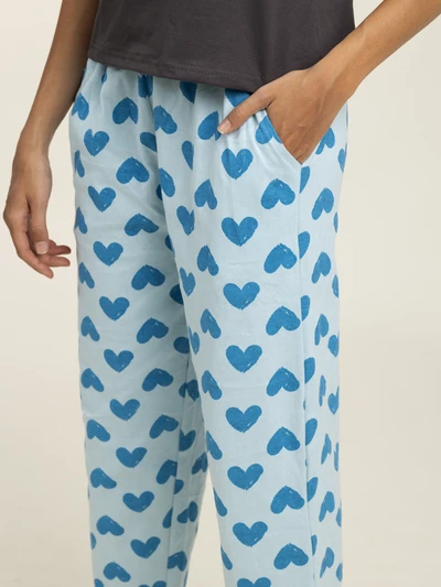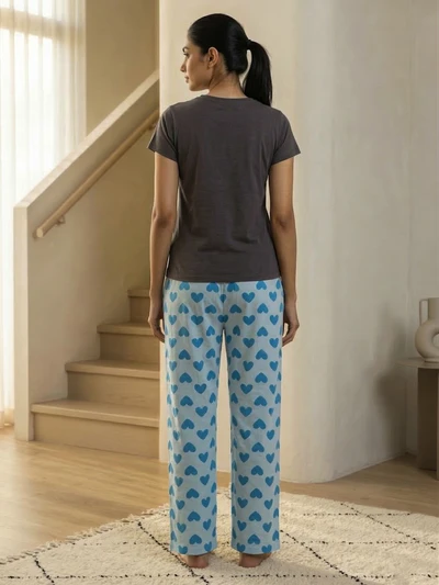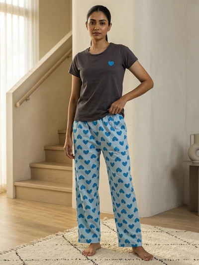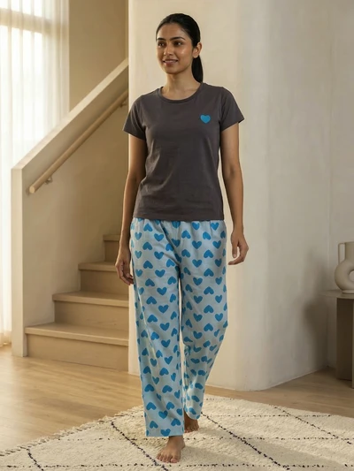 Blue Hearts Soft Cotton Pyjama Set For Women