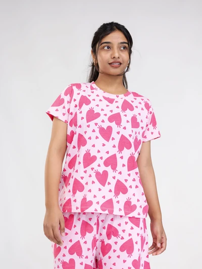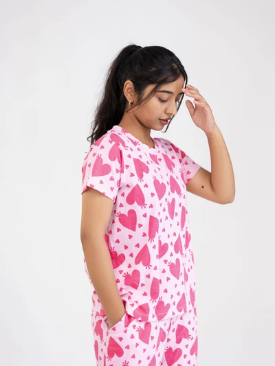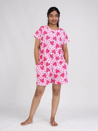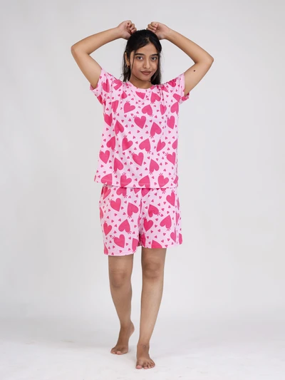 Blush Pink With Red Heart Cotton Shorts Set