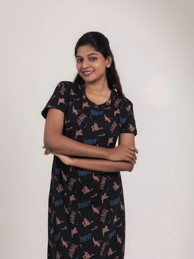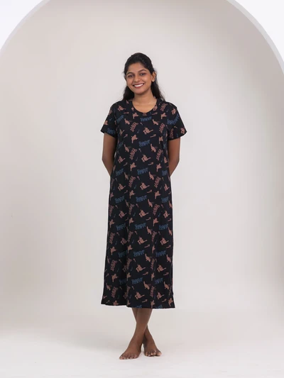 Black Half Moon - Cotton Maternity Lounge Dress